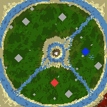 Przyjemna mapka, w sam raz na pojedynek. Początkowe surowce, oprócz złota, są słabo strzeżone, ale ich źródła musimy sobie wybudować, nie ma więc sensu grać z SI. Rozszerzając strefę wpływów zajmujemy kolejne miasto i znajdujemy się w strefie środkowej, gdzie powinnyśmy spotkać wroga, znajduje się tam specyficzna Twierdza. Jeśli ją zajmiemy zyskamy możliwość przejścia do sąsiada.