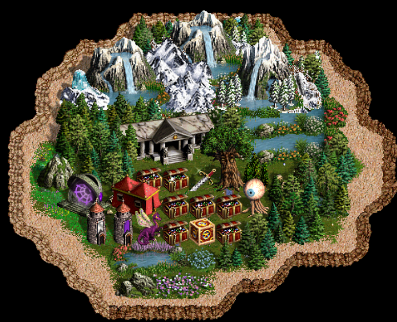 Mapa posiada 2 poziomy; zaklęcia miejski portal, lot i drzwi wymiarów są wyłączone, ale można się ich nauczyć w chatkach proroków. Przeciwnicy są znacznie silniejsi od gracza; mapa posiada liczne portale i dobre drogi, które skracają podróżowanie. Gracz musi uważać, żeby komputer fioletowy nie odkrył wszystkich kluczników, którzy są albo przed stolicami poszczególnych graczy komputerowych, albo w podziemiach, gdyż inaczej uwolni bardzo potężnego bohatera, który - o ile Gracz nie będzie wystarczająco silny - zmiecie wszystko z powierzchni mapy.