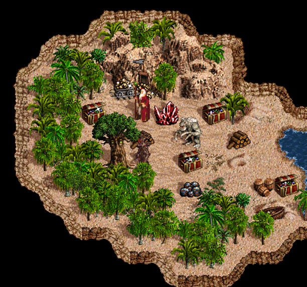 Inspiracją do zrobienia mapy był szablon Jebus Cross. Podzielona jest na 8 stref startowych z równą zawartością, zróżnicowanych pod względem wyglądu i jedną środkową bogatą w zasoby i wartościowe artefakty, bronioną przez silne stwory. Biorą udział wszystkie zamki z oryginalnej gry (brak Wrót Żywiołów i Przystani). Rozgrywka rozkręca się dosyć powoli i jest przeznaczona na długą grę. Zablokowane są niektóre umiejętności, a część czarów (dostępne są wszystkie poza Lotem) do zdobycia jest podczas zwiedzania mapy. Fabuła jest szczątkowa i służy wprowadzeniu w klimat konfliktu. Komputer dostaje małą pomoc w postaci zasobów i złota.