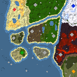 Każdy z czterech graczy może być losowym stronnictwem, ale najbardziej opłaca się wybrać określone. Czerwony - Życie, niebieski - Ład, zielony i pomarańczowy - Chaos. Jest to uwarunkowane siedliskami, startowym terenem, najbliższymi miastami i przedmiotami. Mapa jest ładnie wykonana, ale dość osobliwie, strażnicy często pilnują nie tylko kopalni, czy siedlisk, ale też artefaktów (w bonusie z kopalnią złota np.) Do większości wysp da się dostać mostem - wyjątkiem są te w pobliżu zielonego gracza.