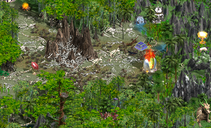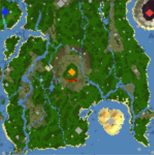 Tak samo widać że mapa była robiona na angielskiej wersji edytora ponieważ 0 znaków polskich. Rzecz która mi się nie podobała to że po pokonaniu wrogów musiałem pokonać na koniec jednego neutralnego bohatera mimo że na takich mapach raczej powinno chodzić o pokonanie graczy. Dodatkowo podczas mojej rozgrywki jak chodziłem główną armią nie korzystałem z teleportów ponieważ wszystko mi się zlewało cóż dżungla to wszystko zielone.