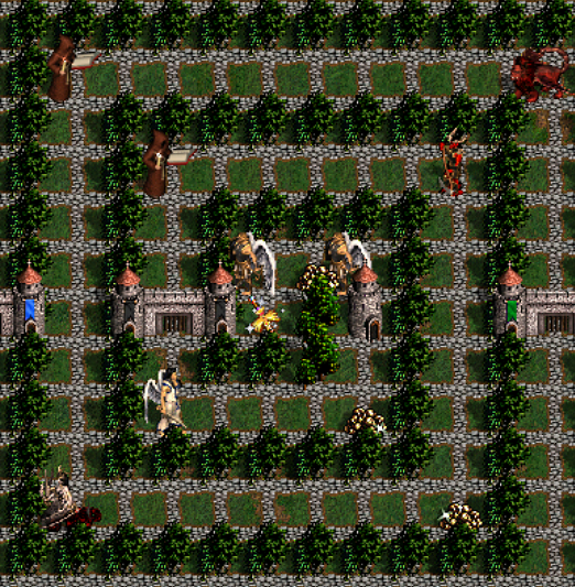 1) Autor ewidentnie postawił na skillowanie bohatera, zbieranie armii i artefaktów. Niestety nie idzie za tym jakość gry. Walki są nudne, monotonne, niewymagające. Pomimo dużej ilości neutrali dostajemy na start bohaterów i wojsko, które ułatwia nam pokonanie niedogodności.