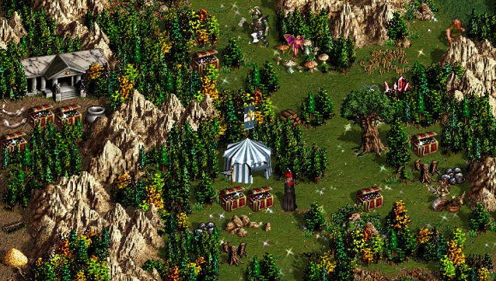 Wielka i starannie wykonana mapa, szkoda, ze bez fabuły... Zaczynamy bez bohatera, a strefa początkowa jest olbrzymia, znajdują się w niej dwa dodatkowe miasta i zestaw kopalni - szybkie dotarcie do źródła strategicznego zasobu może okazać się trudne. Oprócz tego są siedliska, obeliski, artefakty, wszystko czego trzeba do dobrej zabawy. Do wroga dostajemy się tunelem, kiedy uznamy za stosowne przekraczamy bramę i ruszamy na wroga - jeśli jednak on też uznał, jak my, że trzeba dokonać ekspansji. Misję mogą skrócić zaklęcia Wrót Wymiarów i Lotu - nie zostały zablokowane i zapewniają znaczną przewagę.