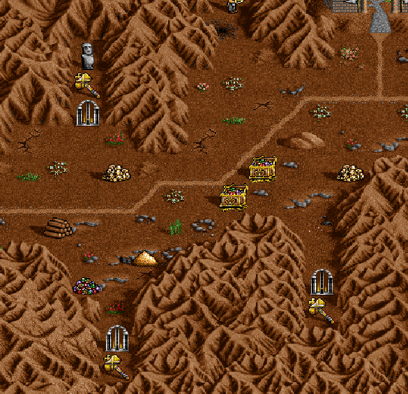 Sytuacja początkowa na tej rozleglej i szczegółowej mapie nie wygląda za dobrze. Cel mamy tuż pod nosem, ale nie jesteśmy go w stanie osiągnąć. Wrogowie mimo odległości są poważnym zagrożeniem. Złota nie powinno nam brakować mimo konieczności spłacania długów Wuja, gdyż w okolicy jest kilka kopalni złota, a teren jest bardzo bogaty w stosy tego kruszcu. Problem tkwi w surowcach, a właściwie w ich znikomym dostępie i potężnych strażnikach kopalń. Mapa jest obfita w bariery, teleporty i inne struktury urozmaicające rozgrywkę, co wraz ze starannym wykonaniem otoczenia zapewnia wiele godzin rozrywki.