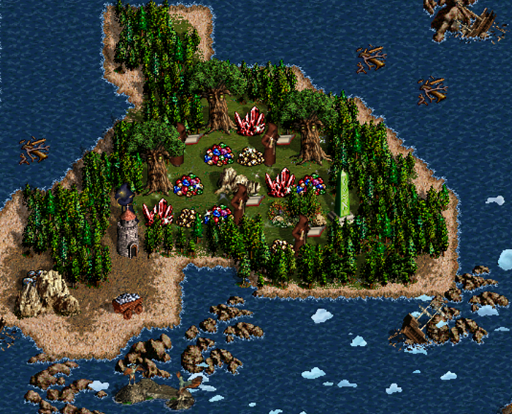 Wyrzuciło mi graal'a w takim miejscu (za jasnoniebieską bramą), że nie da się tam dopłynąć (skrzynie ze skarbami na brzegu, nie ma jak zacumować). Brak lotu (i tak nic by nie dał, za mało pkt ruchu, żeby przez wodę tam dolecieć) i wrót wymiarów.